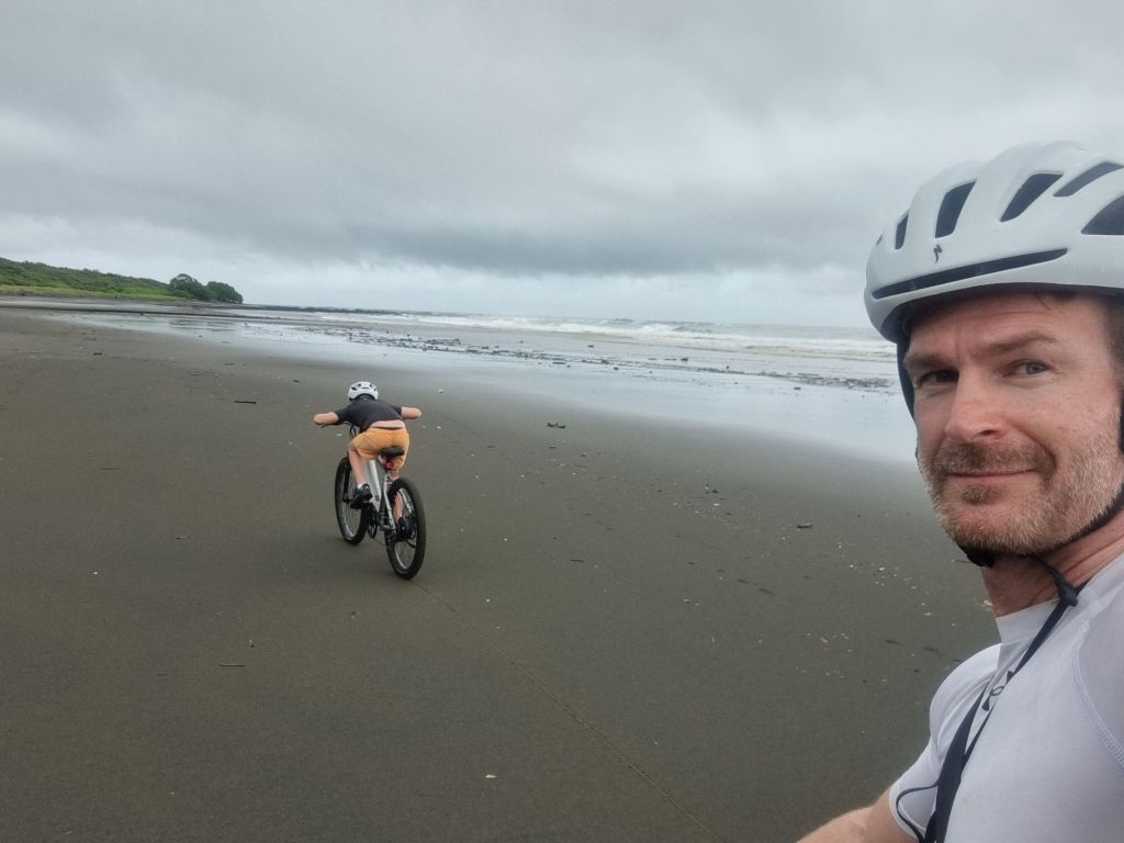 Regn. Och mycket av det. Dagen började väldigt blött och det bara öste ner, men Morgan och pappa bestämde sig för att hyra lite ebikes och cykla tillbaka till stränder och andra ställen och ha lite utflykt. Regnet lugnade ner sig och bör vi åkte iväg så var det nästan uppehåll.