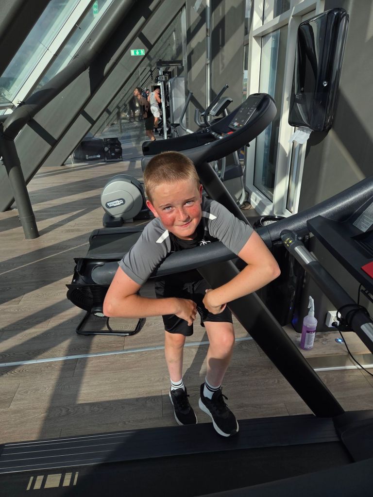 Han dog nästan. Men mamma var inte här, så han återuppstod och sprang vidare. 3km senare och han har kämpat sig igenom ”jag har håll”, ”jag kan inte andas”, ”jag har ont” och ”jag dör”, men här står han ändå, precis som Jesus. Bra kämpat Mogge!