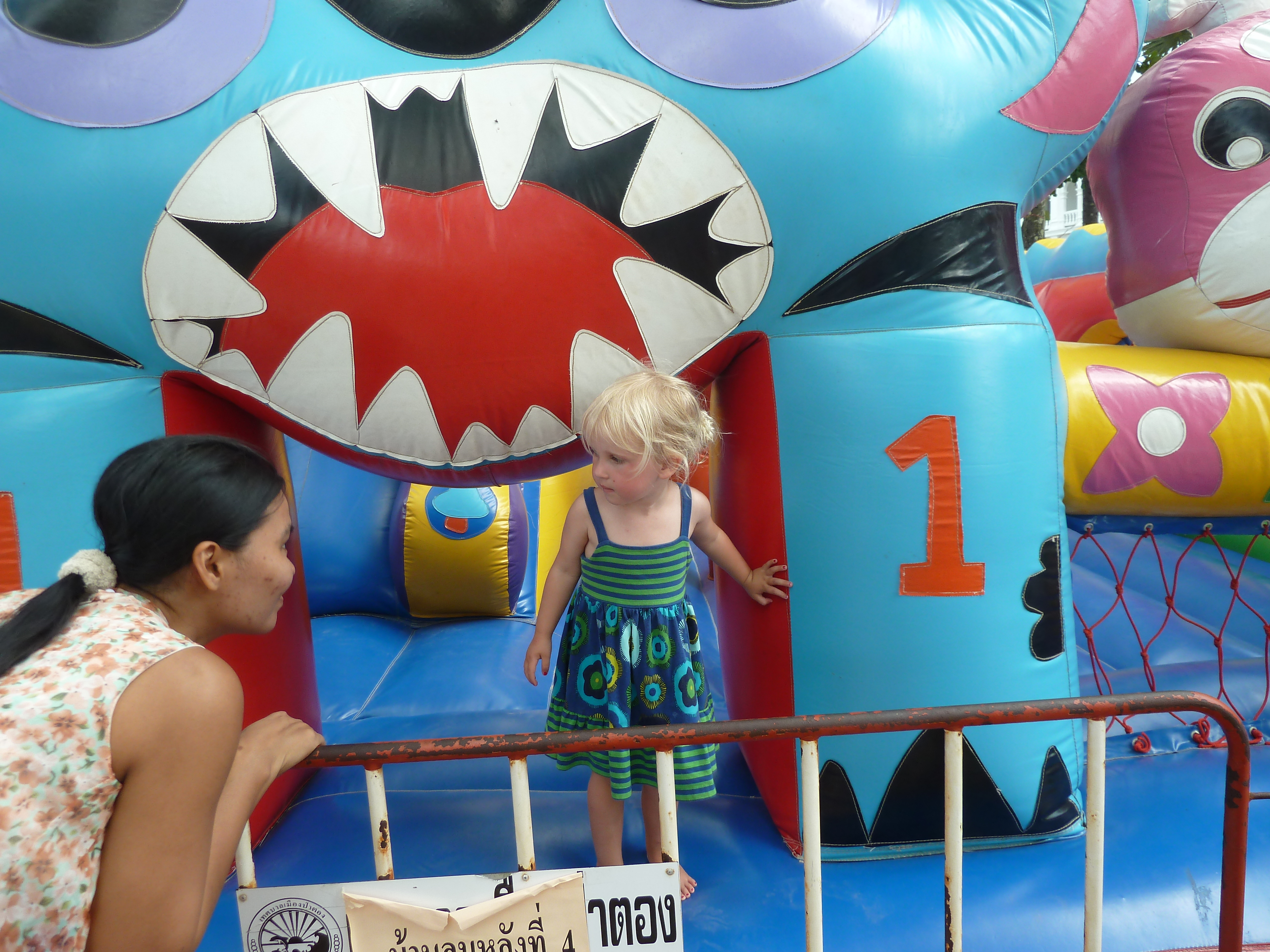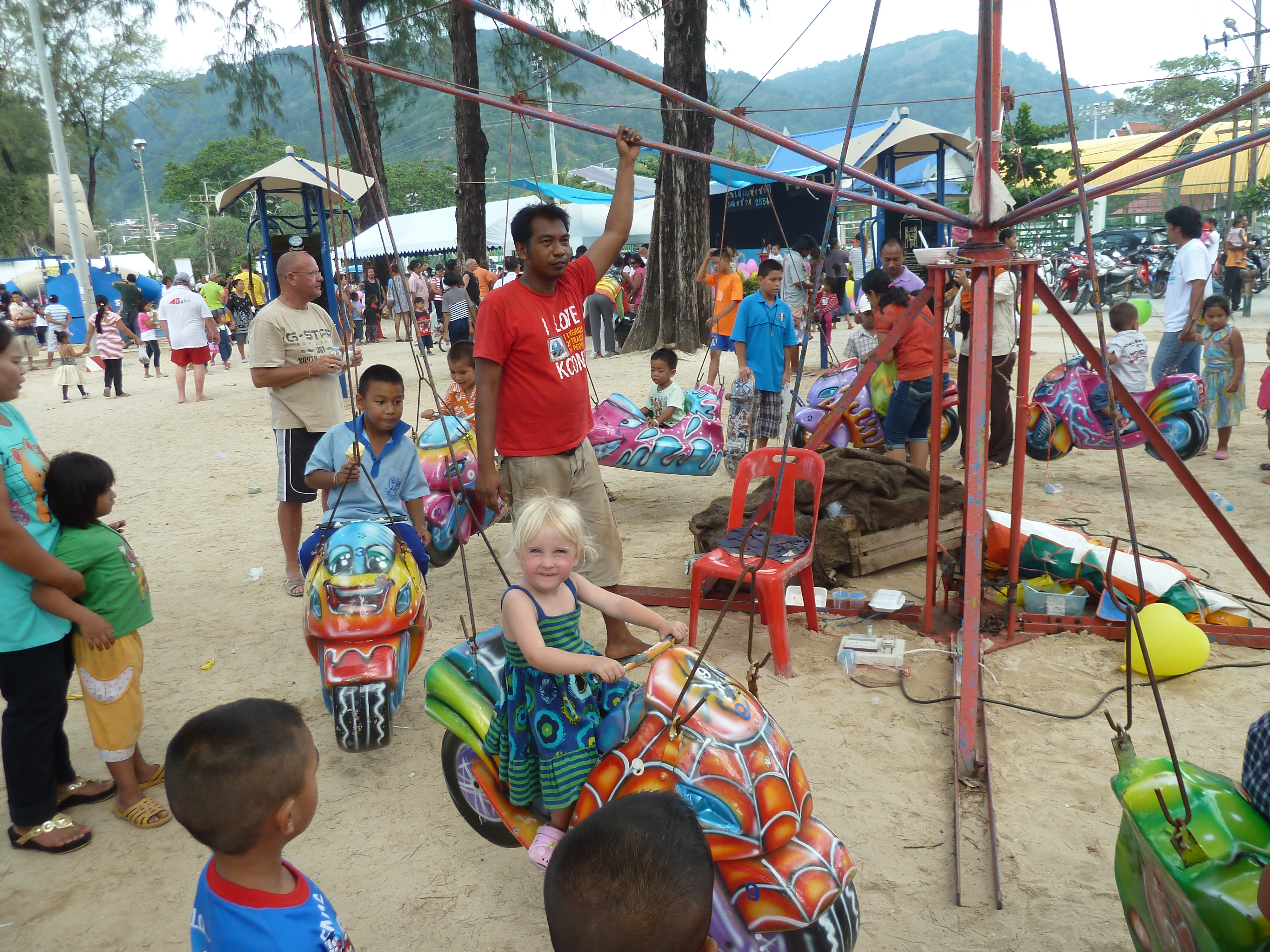 Väldigt kul att gå runt och leka med alla lokala barn, Pattong är inte direkt fullt av små blonda tjejer (eller, rättare sagt inte fullt av små blonda 3-åriga tjejer. Det finns rätt många 23-åriga… ;). Alx hade kul och vi tillbringade lite tid i lekparken med rutschbanor, gungor och andra leksaker som Alx gillade att springa runt emellan.