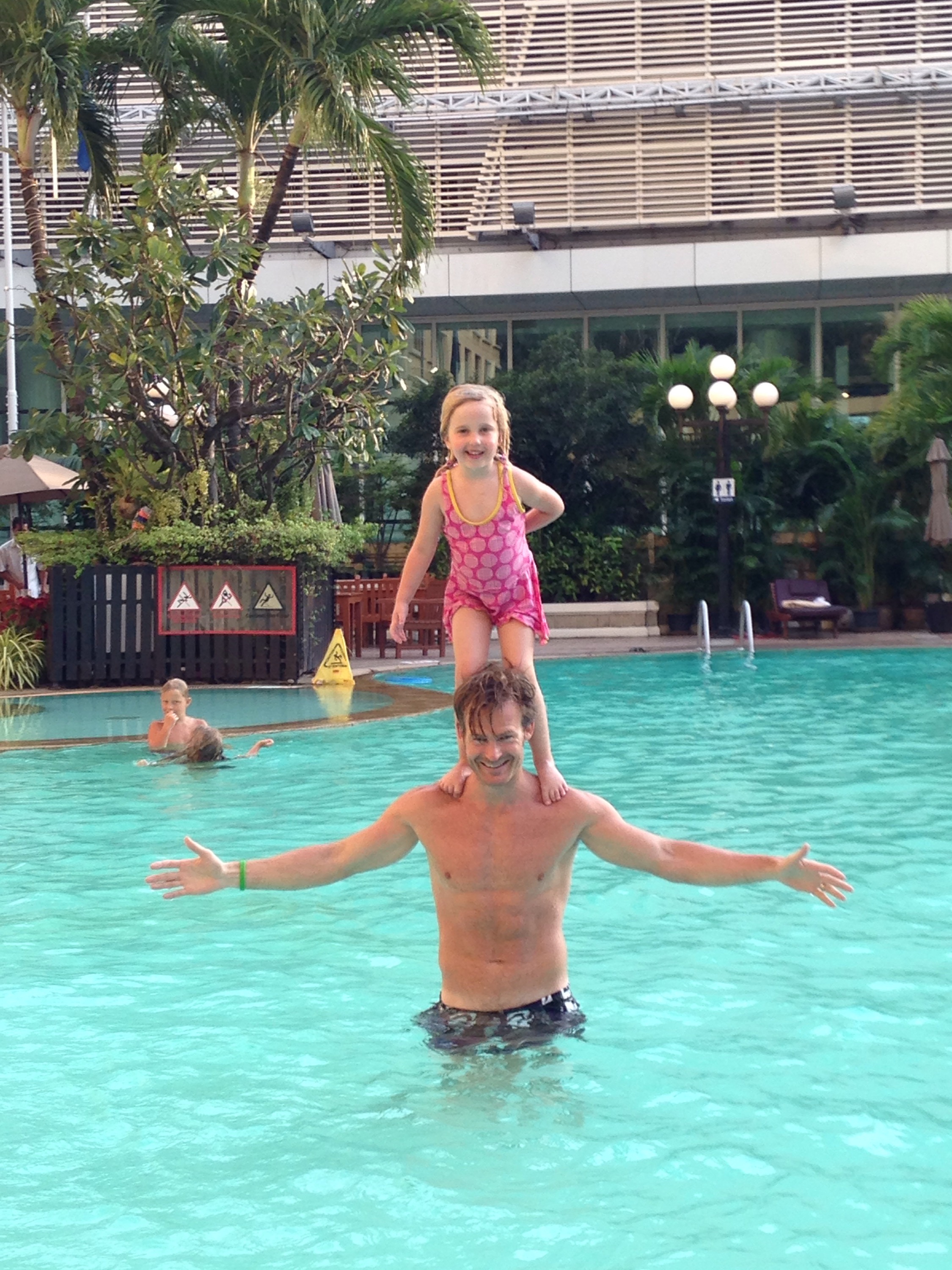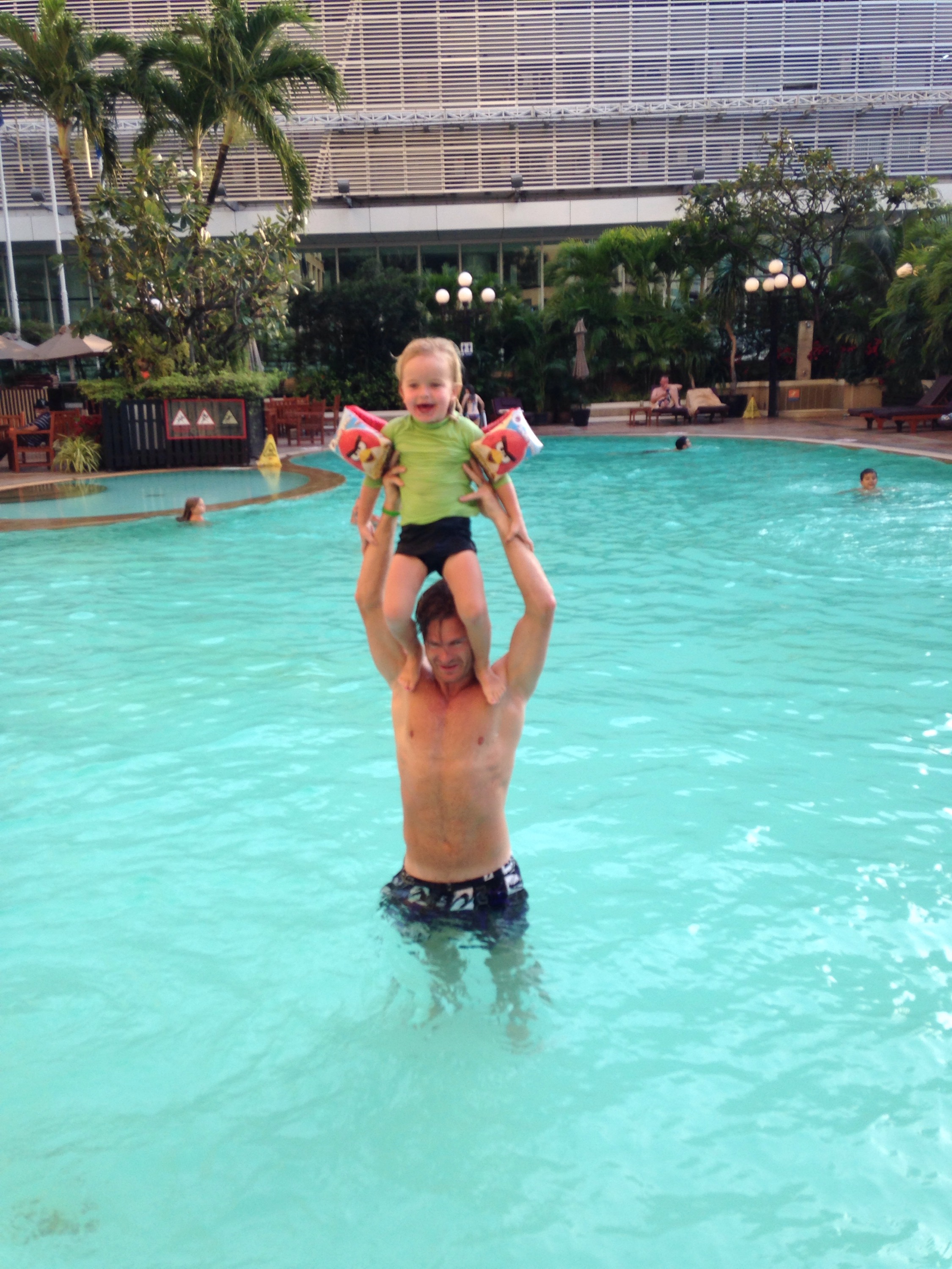 Riktigt trevligt att bada i Bangkok såhär sista dagen innan vi flyger hem. Alx simmar väldigt bra och lyckas ta flera andetag, men simmar fortfarande allra bäst under vattnet 🙂