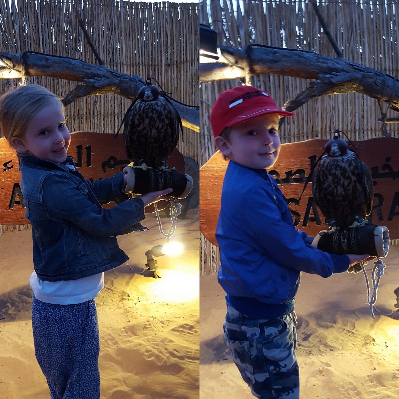 Vi lekte i sanden, såg kameler, åkte sandboard, höll i en falk och åt god mat. Det var en rolig upplevelse för alla 🙂