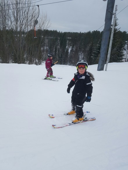 Mycket trevligt med lite mer skidåkning! Morgan har verkligen fått till skidåkningen och åker fort själv utan hjälp. Och han tycker det är mycket roligare än det ser ut på bilden 🙂