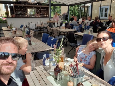 Nu har vi börjat bo in oss i sommarhuset. 13-årig bröllopsdag och då firar vi genom att åka ut till Lindö Värdshus för lunch i solskenet. En härlig dag!