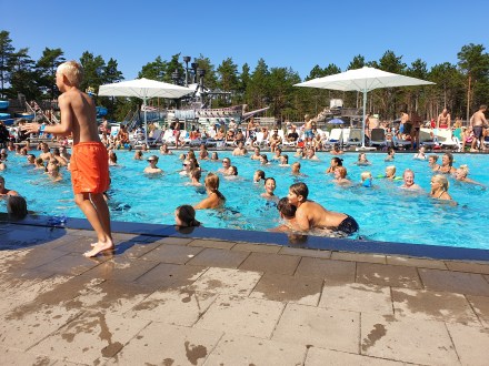 Vi avslutade veckan på Böda Sand camping med lite vattenland (Alx körde vattengympa) och sandstrand. Mycket trevligt, men kallt i vattnet (22grader i poolen och 18 i havet).