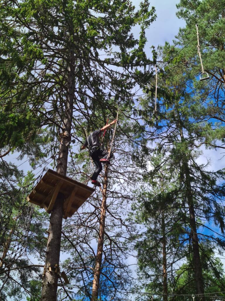 Härlig dag med höghöjdsbana hela familjen (inkl Sarah) och Erik &Kristine med familj. Tyvärr landade Kristine fel efter en zipline och bröt foten på 3 ställen så de fick lämna och åka till sjukhuset 😪