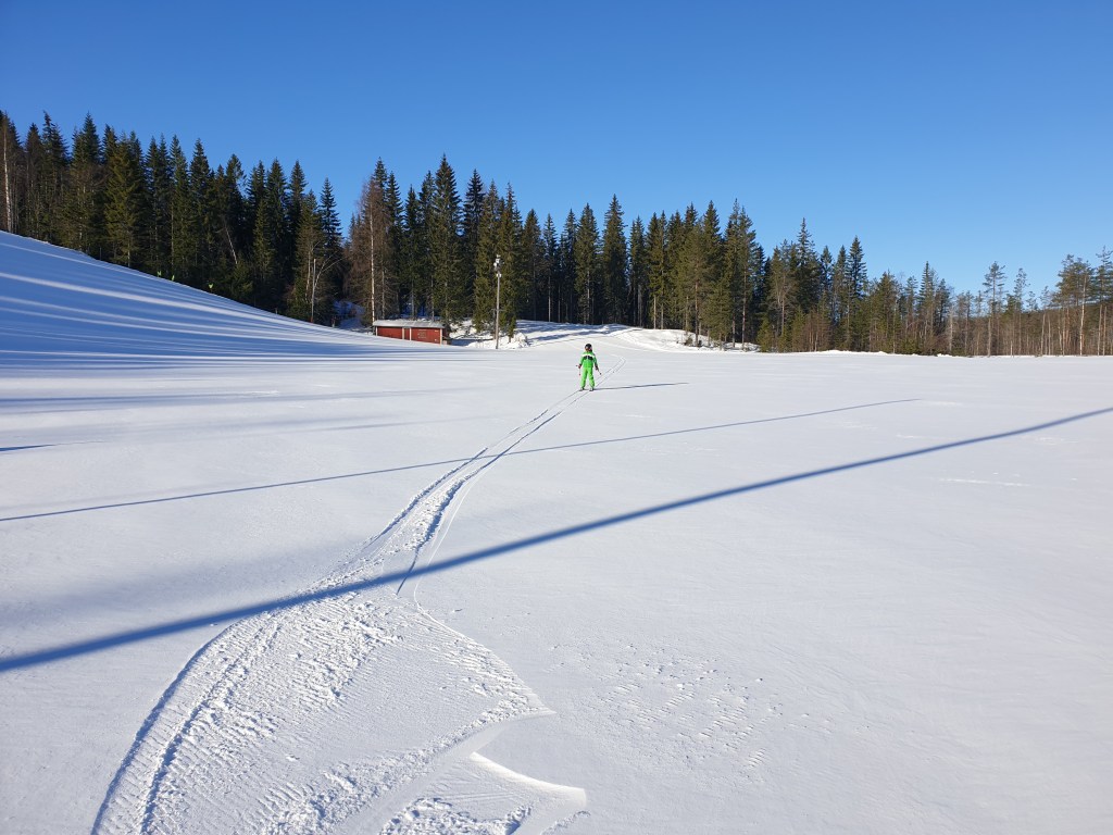 Sen avslutade vi veckan med att vara först ut i Norrbacken (igen). Inga andra på de första 3 åken och kul att få öppna upp backen och liften.