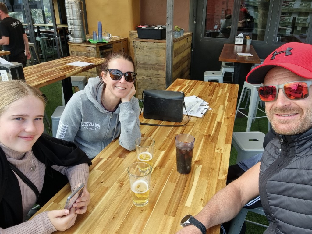 Regnet slutade vid 09 och sedan dess har det varit strålande sol så vi tillbringade dagen med lite promenad längs stranden och hängde lite i Belmont Park där det fanns en höghöjdsbana, lite roliga bilar och annat kul.