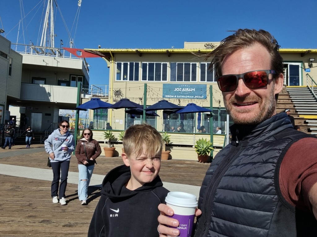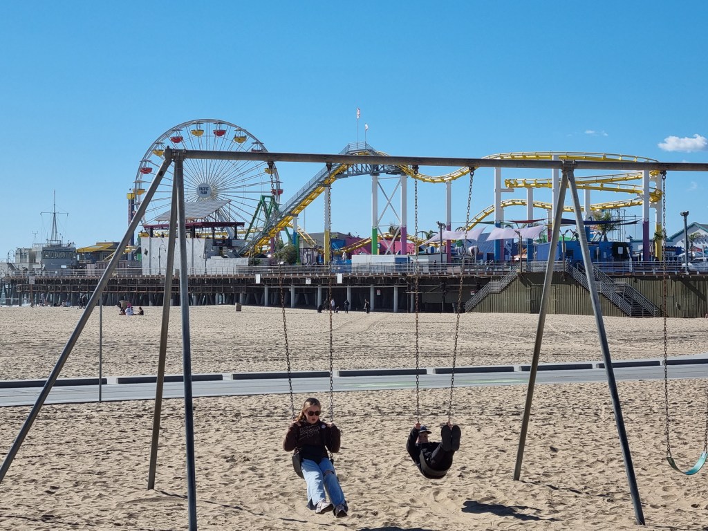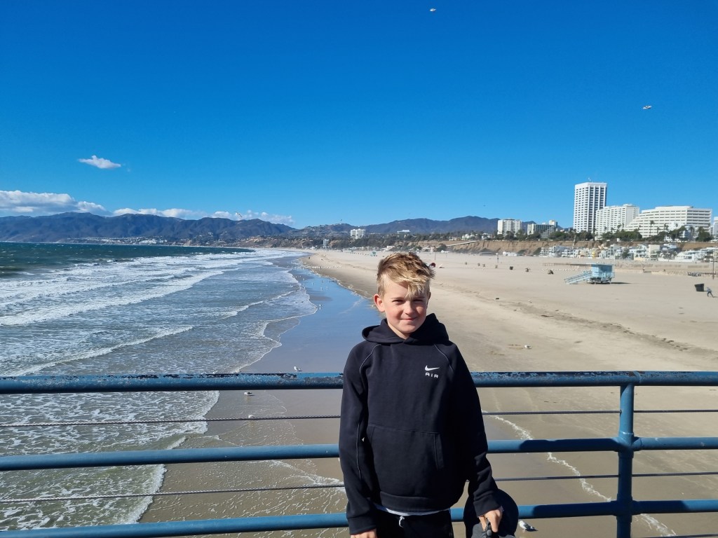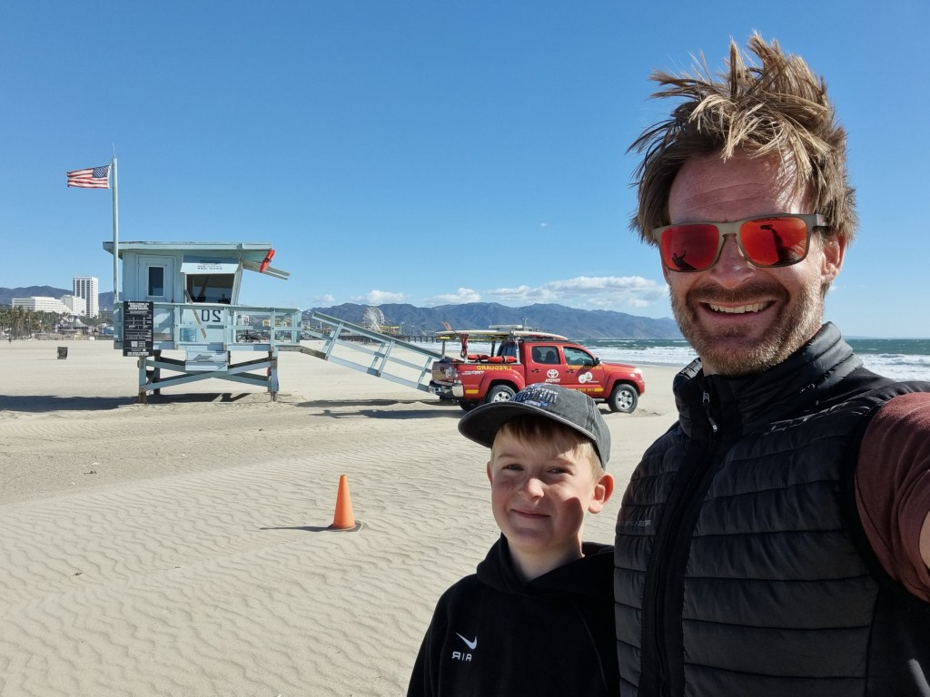 Vi tog en trip till ett väldigt blåsigt Santa Monica och Venice Beach idag. Mycket fint väder, men blåsten gjorde det lite svårt att njuta fullt ut på stranden. Ytterligare en väldigt trevlig dag för alla!