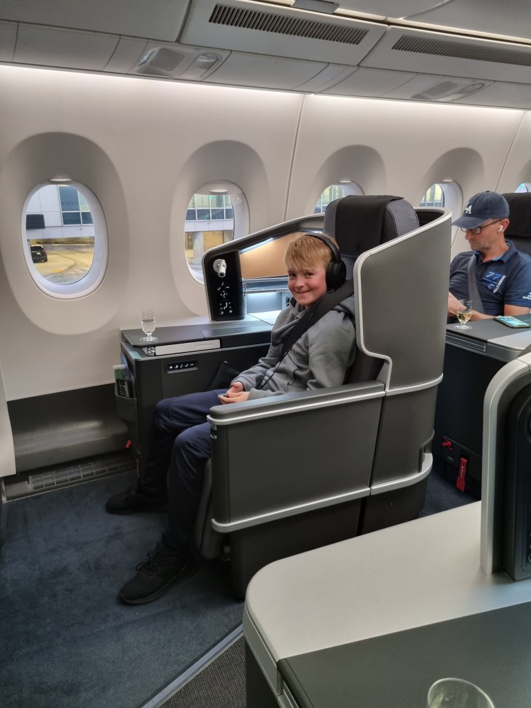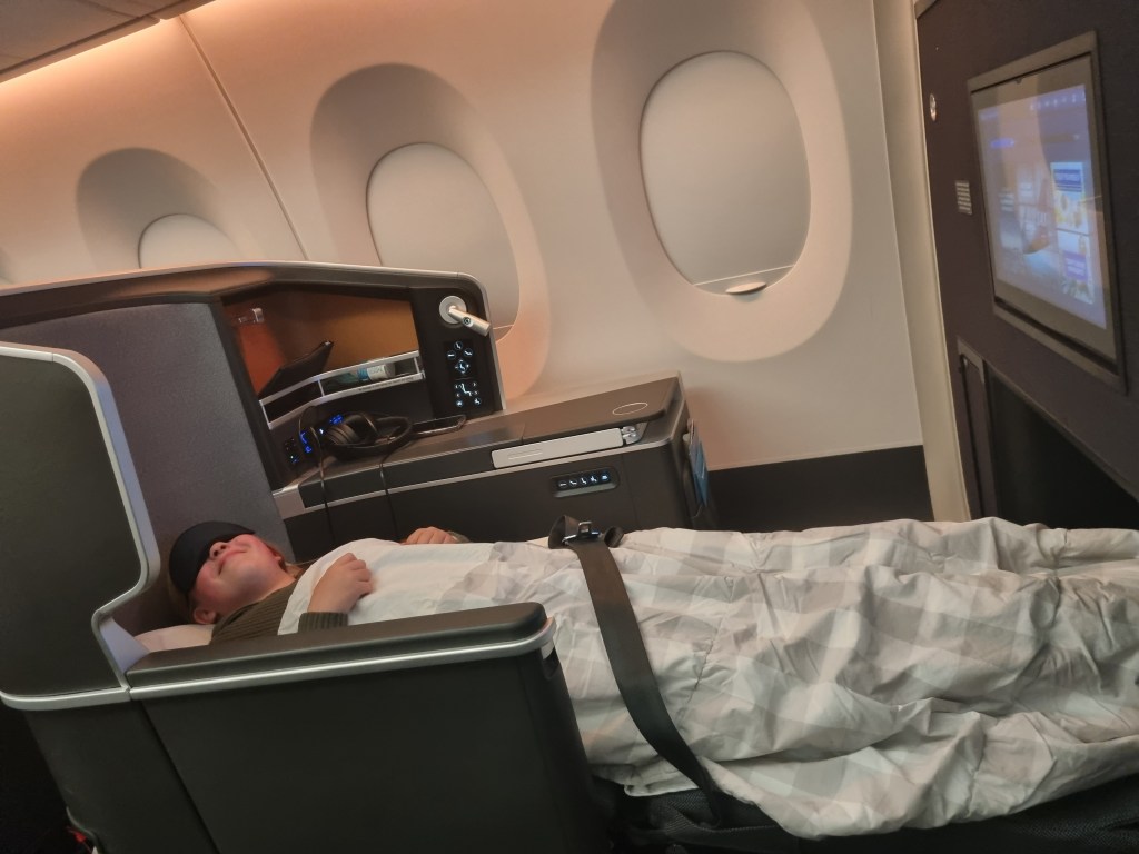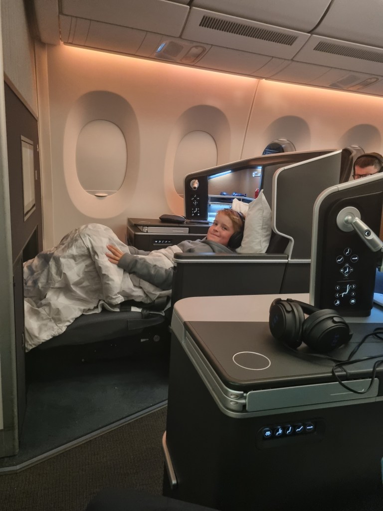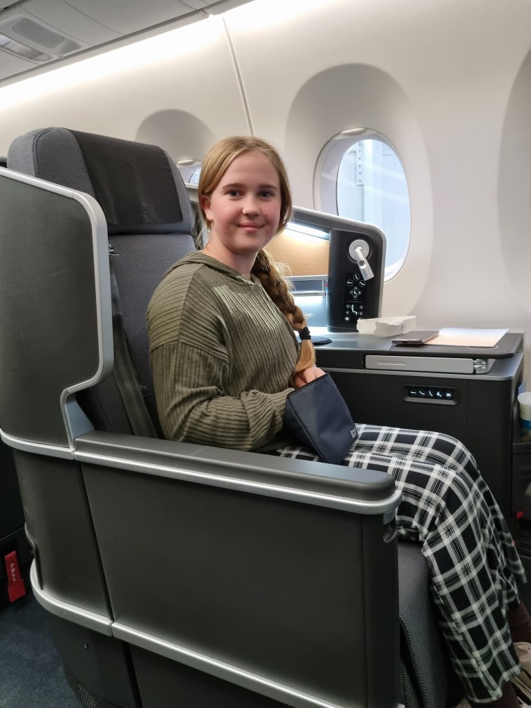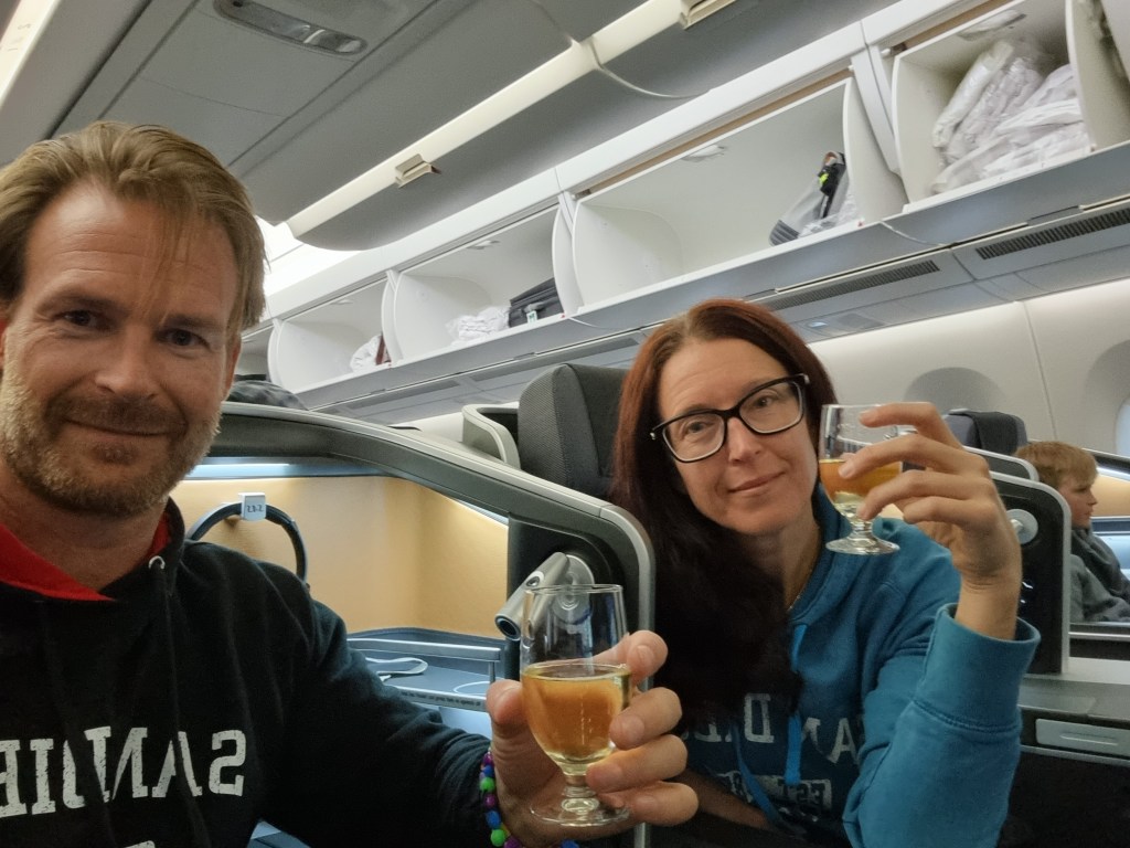 En väldigt skön flygresa! Mamma och pappa fick äntligen lite champagne och vi får alla sova ordentligt på planet för en gångs skull 😀